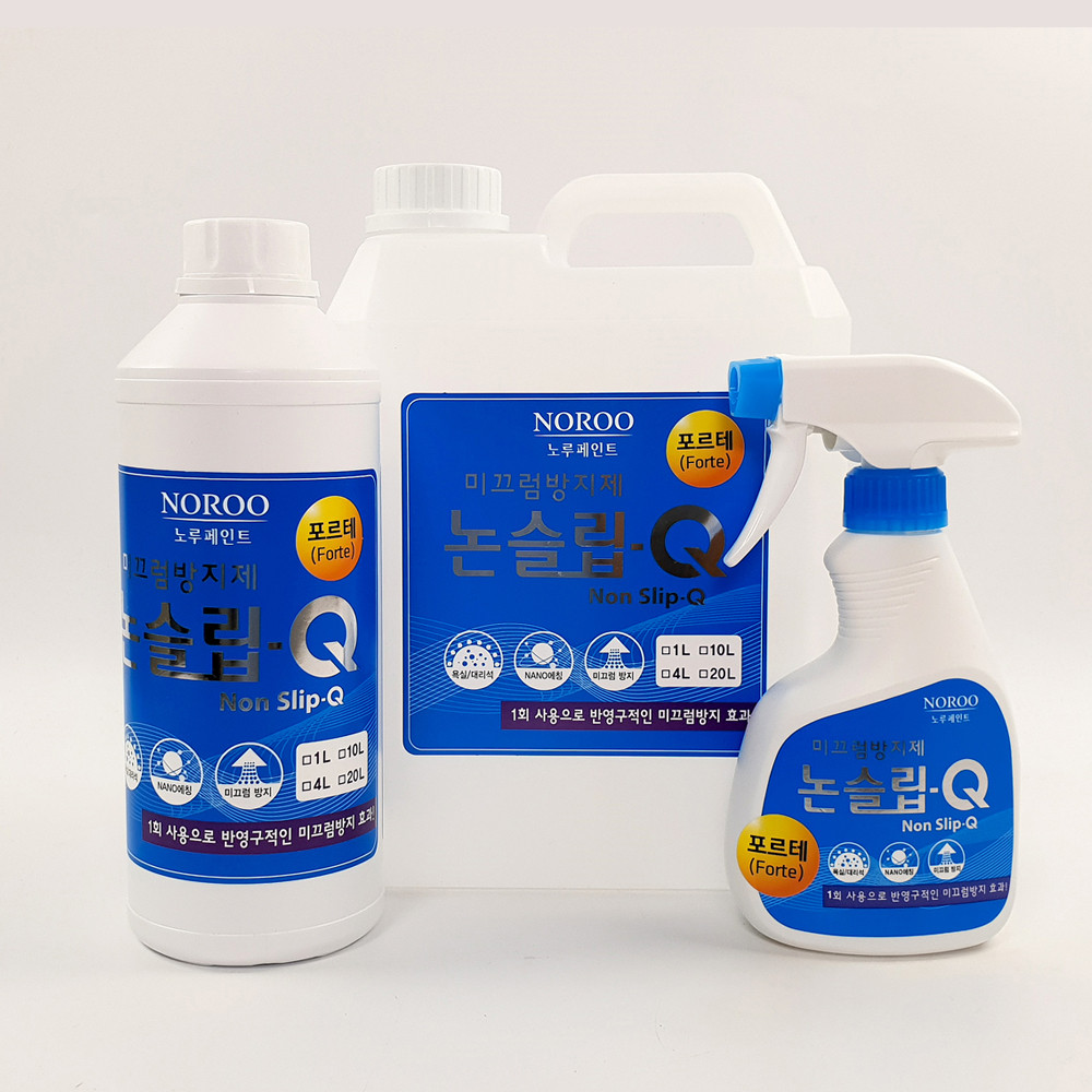 Nonslip-Q spray is a colorless, odorless solution that produces 2-6 micrometers of bumps on the surface of an object containing silicate such as marble, tile, cement, etc.
